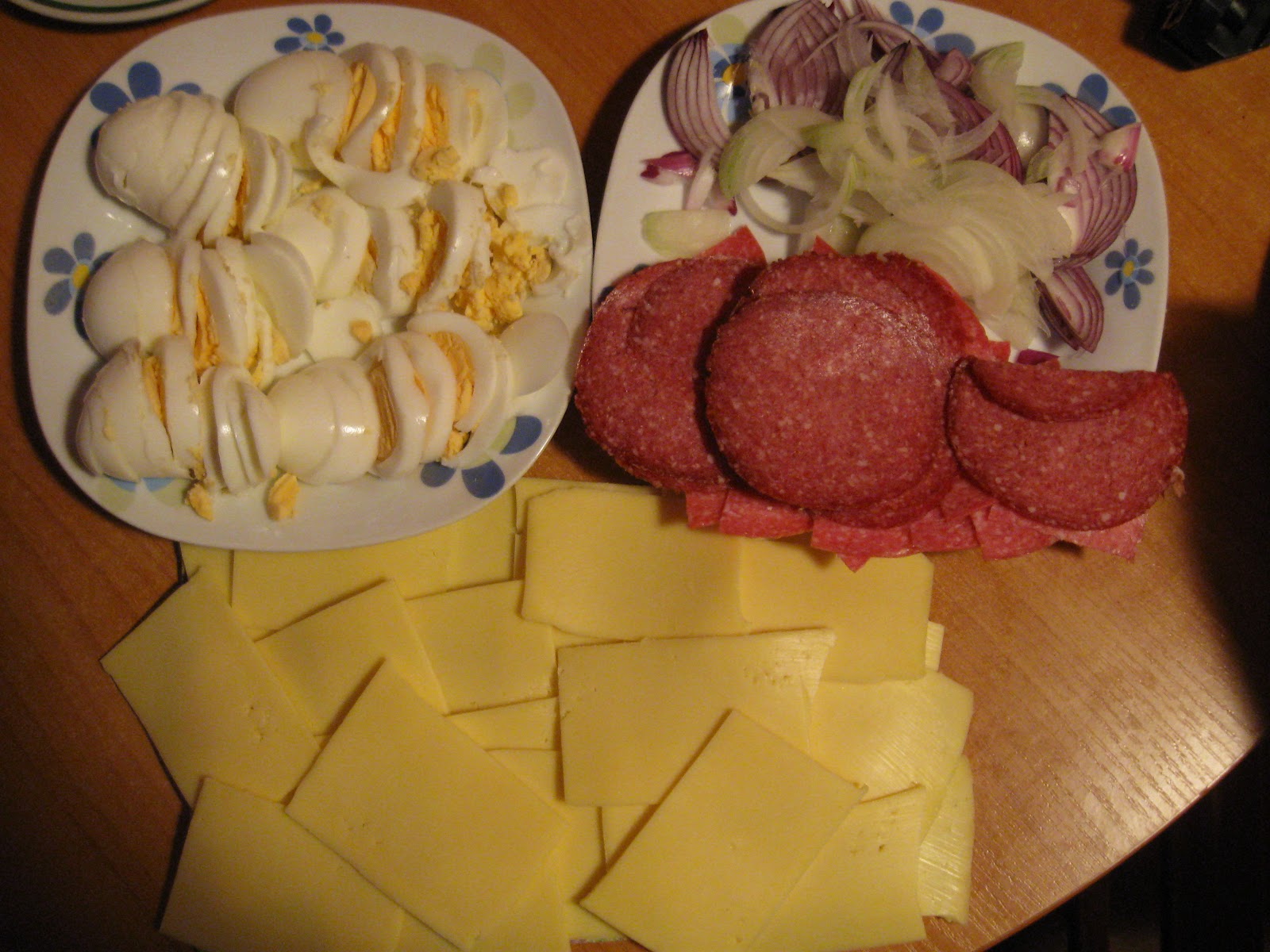 Na chleb wkładamy ser żółty, salami, jajko, cebulę, posypujemy oregano, przykrywamy drugą skibką, i wkładamy do tostera. Po wyjęciu, dajemy kleks ketchupu i możemy zjeść:).