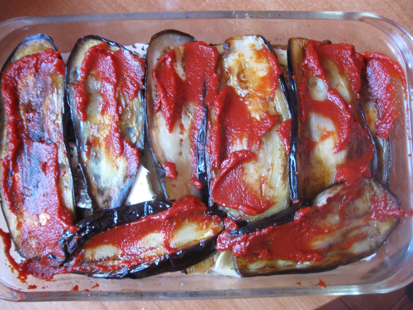 W żaroodpornym naczyniu wysmarowanym oliwą układać warstwami bakłażany, smarować je koncentratem i przykrywać plastrami mozzarelli. Ostatnią warstwę powinny stanowić bakłażany posypane tartym parmezanem i skropione oliwą.