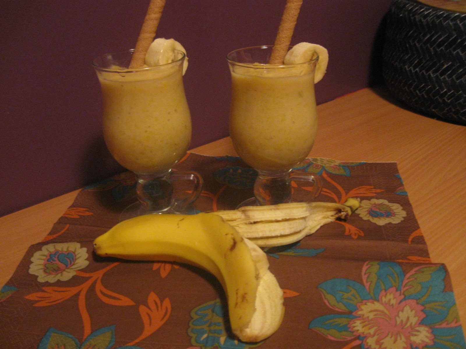 Banany i mango pokroić na mniejsze części i wrzucić do blendera. Dodać sok z cytryny, cukier i imbir - po czym wszystko zmiksować. Podawać zaraz po przygotowaniu.